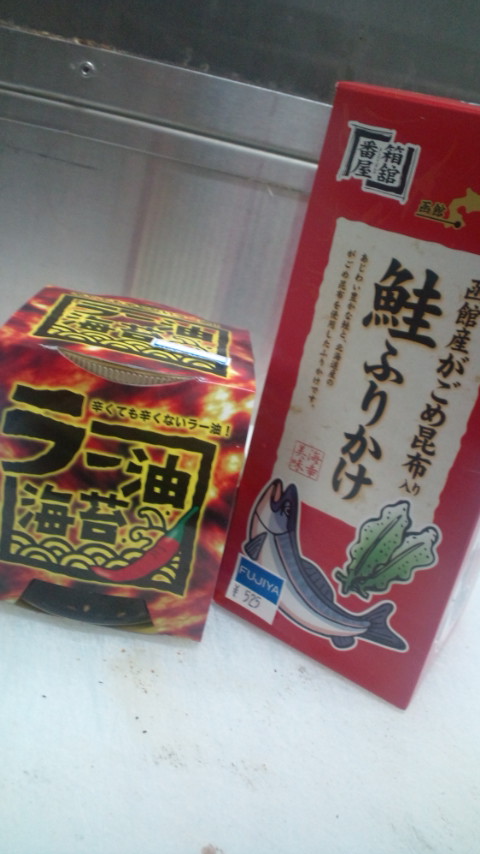実にうまうまなラー油海苔と、これまた美味そうな鮭ふりかけ!