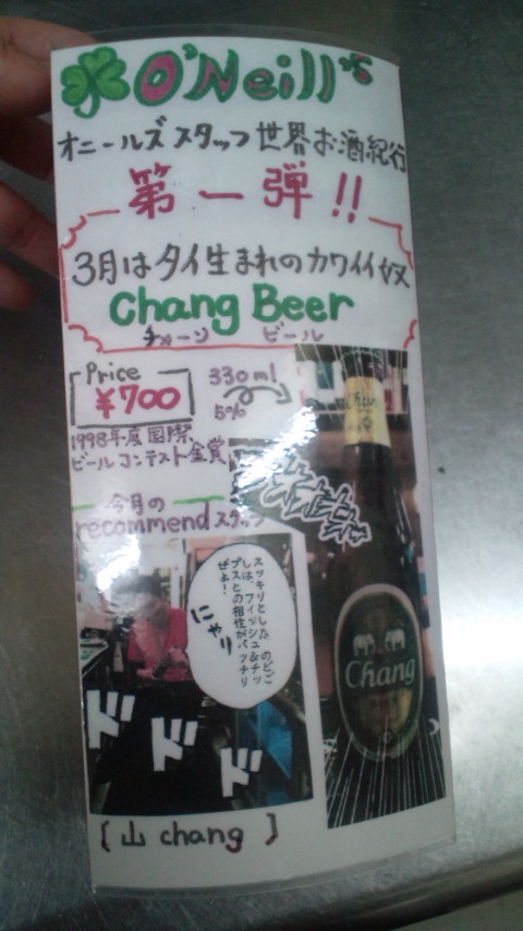 3月いっぱいでオニールズを卒業する山Changオススメ!