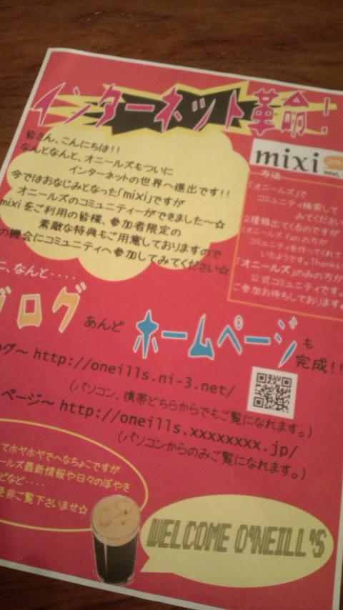 ところで、mixiにオニールズのコミュニティーがあるのご存知ですか?