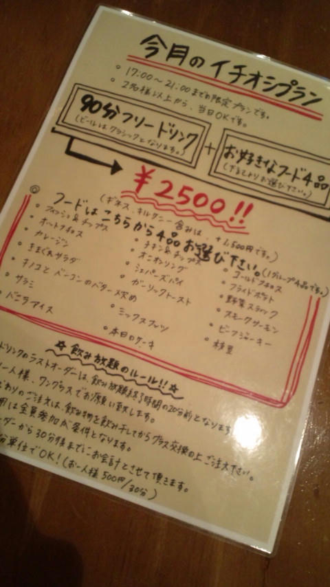 ・2500円で90分飲み放題!(ビール込)